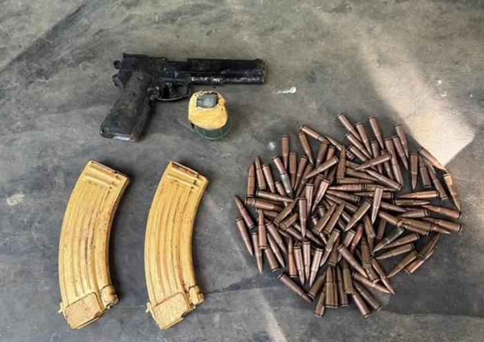 The haul of weapons, including a 09mm pistol, two T-56 magazines, 115 rounds of ammunition, and a hand grenade, was found buried in a plot of land in Middeniya.