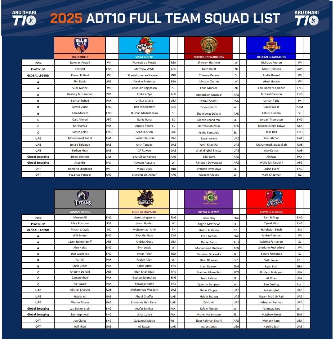 Several Sri Lankan players have been selected to represent various franchises in the upcoming Abu Dhabi T10 League 2025, which will be played in the United Arab Emirates.