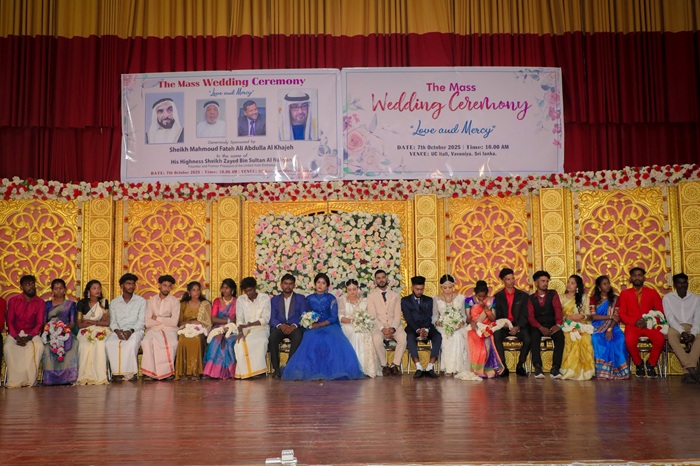 According to MP Bathiudeen’s Media Office, the event, the first of its kind in Sri Lanka, brought together 20 Buddhist, Catholic, and Hindu couples in a collective wedding ceremony that celebrated harmony, compassion, and unity among Sri Lanka’s diverse communities. Each couple was also presented with a cash grant to help them begin their new lives.