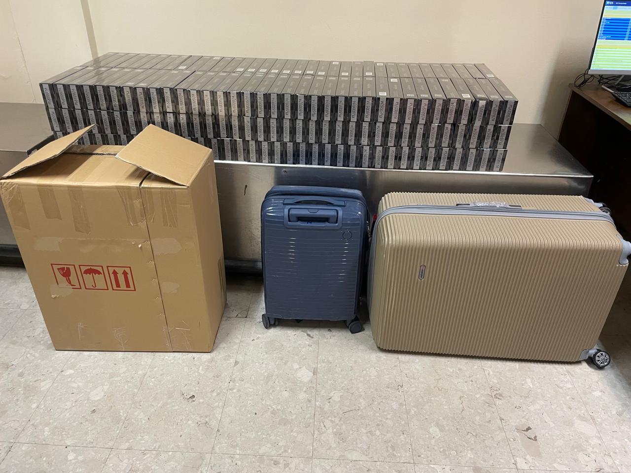 Officers of the Police Narcotics Bureau Airport Unit carried out the arrest at the arrivals terminal following a tip-off. Police seized 42,000 cigarettes, equivalent to 210 cartons, during the operation.