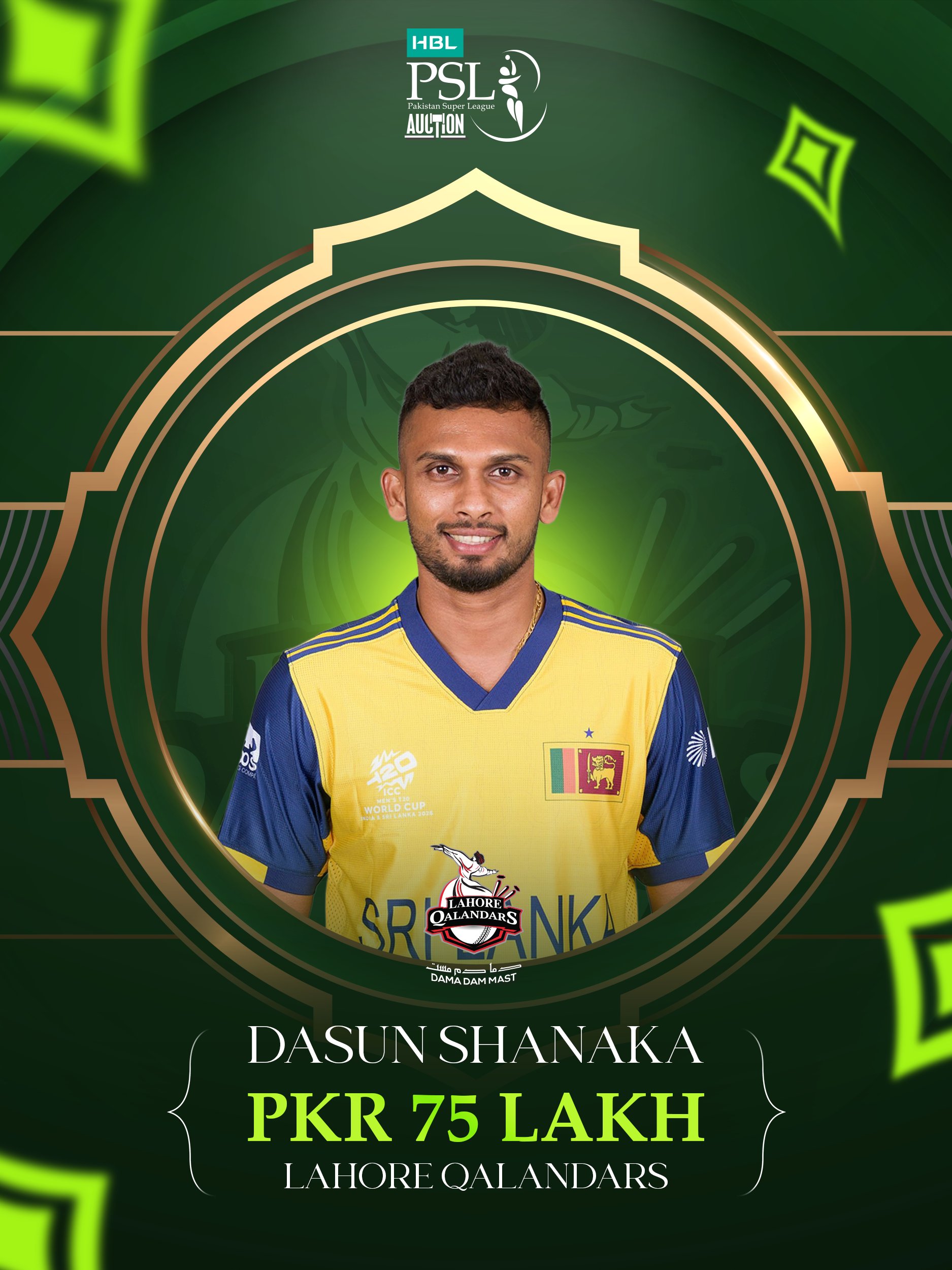 Kusal Perera was snapped up by HH Kingsmen for PKR 3.1 crore (approximately LKR 35 million), while Dasun Shanaka was bought by Lahore Qalandars for PKR 75 lakh (approximately LKR 8.4 million).
