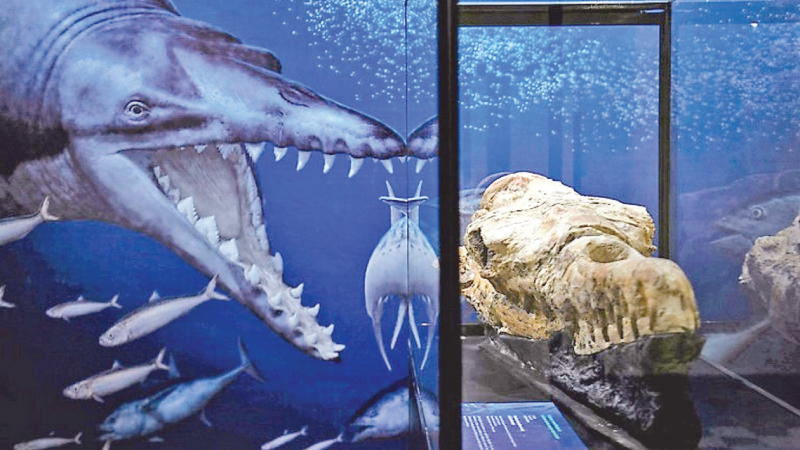 The skull of a basilosaurus, an ancient whale, seen in Lima, Peru on March 17.