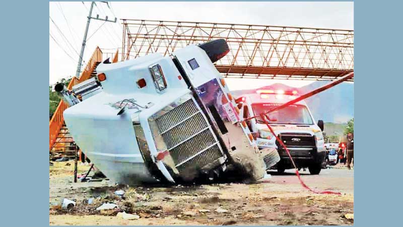 MEXICO: A cargo truck jammed with people who appeared to be Central American migrants rolled over and crashed into a pedestrian bridge over on a highway in southern Mexico on Thursday, killing at least 53 people and injuring nearly five dozen others, authorities reported.