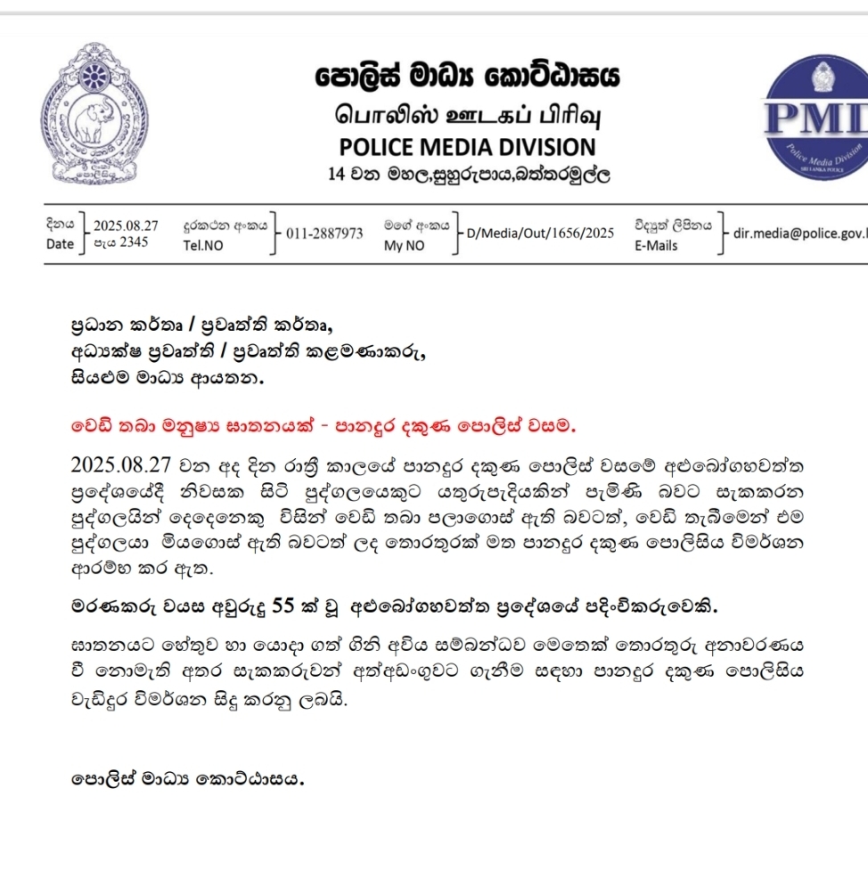 Investigations have been launched by the Panadura Police to identify and arrest the suspects. (Newswire)