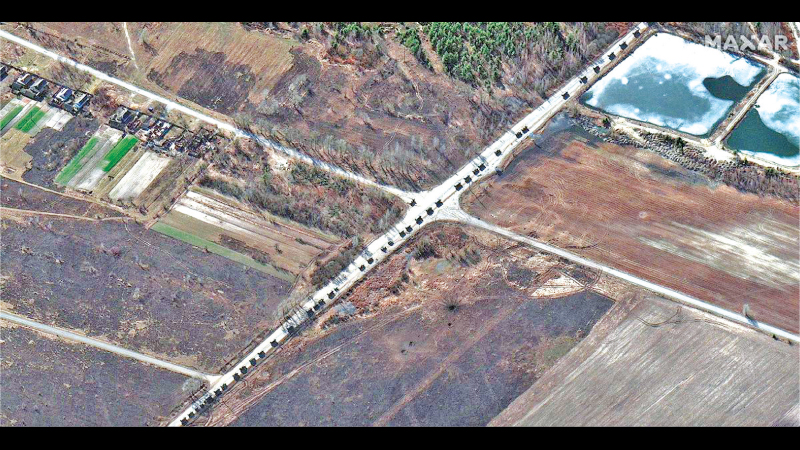 RUSSIA,UN,UKRAINE: Satellite photos show a convoy of Russian forces north of Ukraine’s capital stretching for 40 miles.