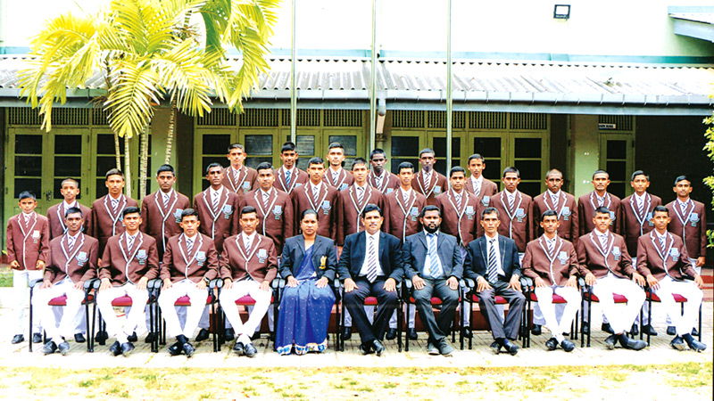 St Servatius College team: Front row (from left) – A M Pryantha (Junior coach), T D Munasinghe (Head Coach), Hasitha Amarasinghe (Captain), Amila Nianthi (Deputy Principal), H K L B Virajith (Principal), Rev Viraj Fonseka (MIC), Chiran Neththaru (Vice Captain), Nayanananda de Silva (POG), Damith Chamara Kumara (Assistant Coach). Middle row (from left) – Mithila Minsara, Nehara Tharun, Abises Sulakshana, Chamarindu Nethsara, Bhathiya de Silva, Chathum Kulasekera, Chamith Manage, Diniru Abeywickremasinghe, Tharush Damindu, Kushan Wijerama, Tharun Devinda, Thisan Dewmith. Back row (from left) – Praneeth Mihiranga, Tharuka Punsith, Viran Chamuditha, Deneth Kawya, Imal Sandeepa, Tharuka Imadith, Damiru Senitha, Denuwan Pramod, Kaveesha Randula, Vishwa Supun