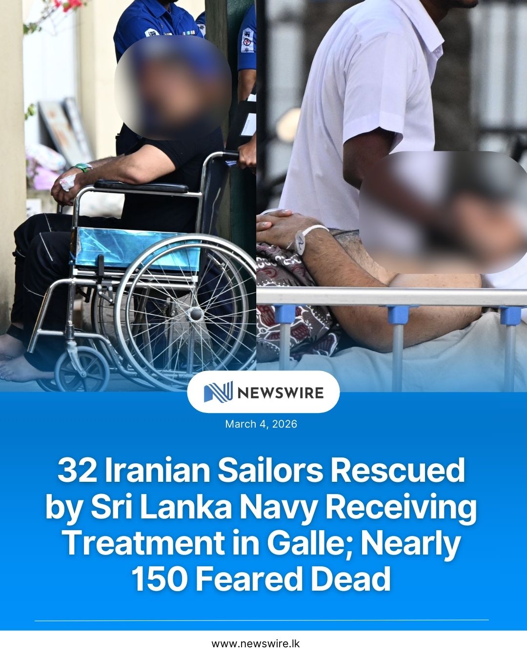 Thirty-two Iranian sailors rescued by the Sri Lanka Navy were brought ashore in Galle and admitted to the Karapitiya Teaching Hospital for treatment.