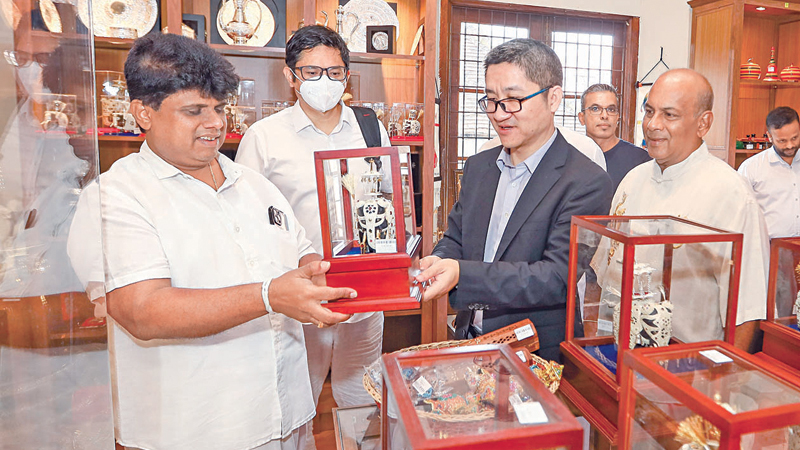 Acting Ambassador of the People’s Republic of China in Sri Lanka Hu Wei, visited the Arathi Exhibition Center, a Souvenir shop in Sri Dalada Maligawa, Kandy and made some purchases. Diyawadana Nilame of Sri Dalada Maligawa, Kandy, Pradeep Nilanga Dela and Sri Lanka China Buddhist Friendship Association President Ajith Dharmawardhana, General Secretary Aruna De Silva and Treasurer, Major K. G. Chandrasiri also participated in the event. Picture by Sulochana Gamage