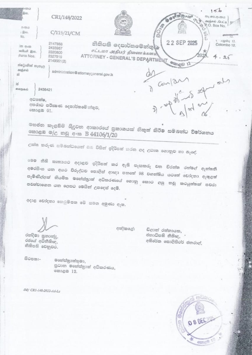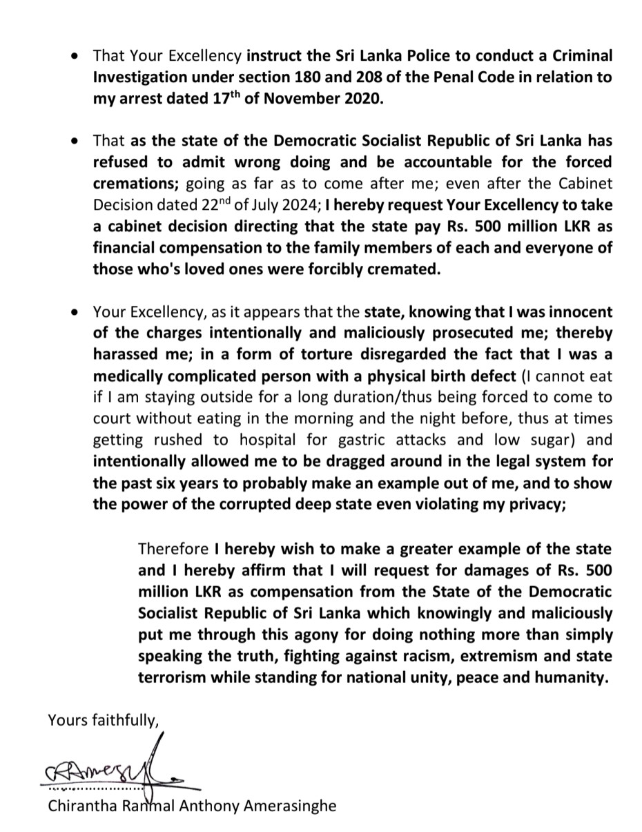 In his letter, Amerasinghe also questioned whether state institutions were protecting Suresh Sallay and called for investigations into the forced cremation policy and actions taken against him.