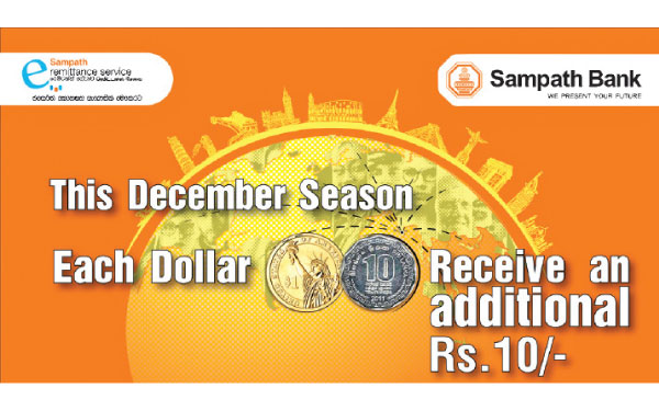 Sampath Bank PLC is offering an additional reward of Rs. 8 per US Dollar for remittances made through the ‘Sampath e-remittance’ service and converted into Sri Lankan Rupees during the month of December 2021.