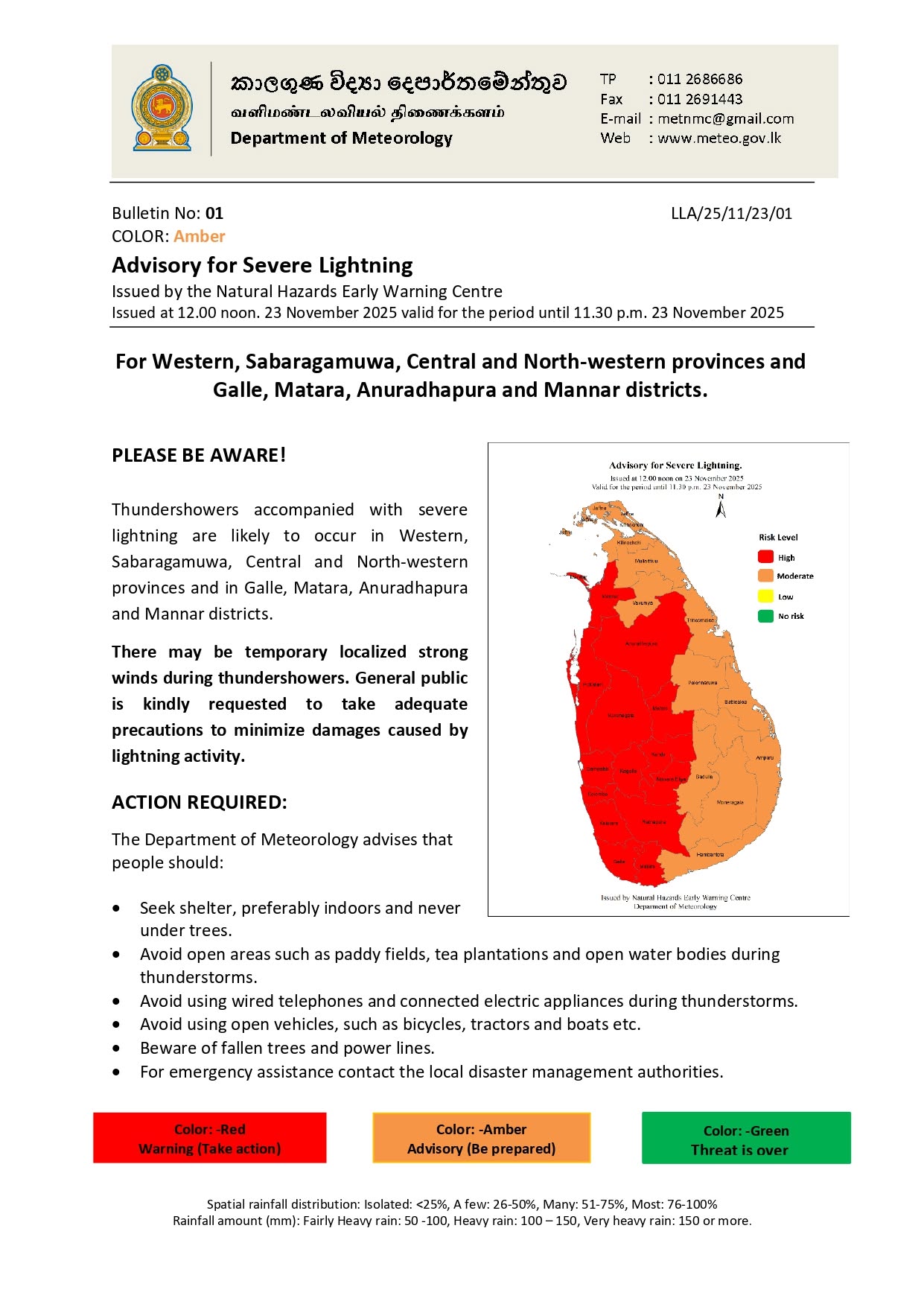 Advisory for Severe Lightning : Alert for 13 districts Local On Nov 24, 2025 Lightning 1 0 1 Share Advisory for Severe Lightning Issued at 12.00 noon. 23 November 2025 valid for the period until 11.30 p.m. 23 November 2025 The post Advisory for Severe Lightning : Alert for 13 districts appeared first on Newswire. 0 1 Share FacebookTwitterGoogle+ReddItWhatsAppPinterestEmail