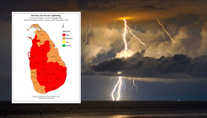 The Department of Meteorology has issued an advisory warning of thundershowers accompanied by severe lightning in the North-western, Uva, Central, Sabaragamuwa provinces and in the Anuradhapura, Mannar, Ampara, and Hambantota districts.