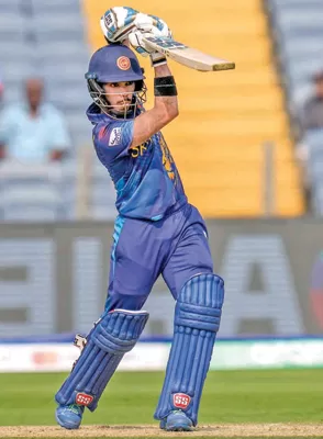 Opener Pathum Nissanka who scored 47 making a stroke