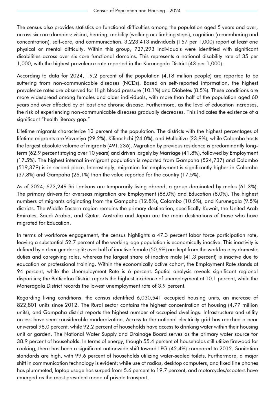 The 2024 Census marks Sri Lanka’s first fully digital census and provides comprehensive demographic, social and economic data to support future national planning and policy decisions. (Newswire)