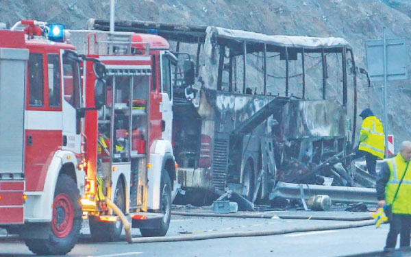 Interior Minister Boyko Rashkov, who visited the site of the accident, said the bodies of those who died in the incident were “clustered inside [the bus] and are burnt to ash.