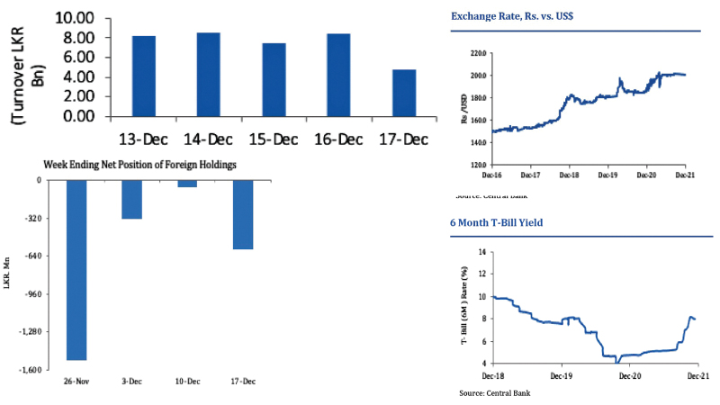 Expolanka was the highest contributor to the week’s turnover value, contributing LKR 6.84Bn or 18.34% of total turnover value. Hayleys followed suit, accounting for 15.63% of turnover (value of LKR 5.83Bn) while Browns Investments contributed LKR 2.60Bn to account for 6.96% of the week’s turnover. Total turnover value amounted to LKR 37.30 Bn (cf. last week’s value of LKR 30.92 Bn), while the daily average turnover value amounted to LKR 7.46 Bn (20.64% W-o-W) compared to last week’s average of LKR 6.18 Bn. Market capitalization meanwhile, increased by 3.29% W-o-W (or LKR 167.24 Bn) to LKR 5,251.98 Bn cf. LKR 5,084.73 Bn last week.