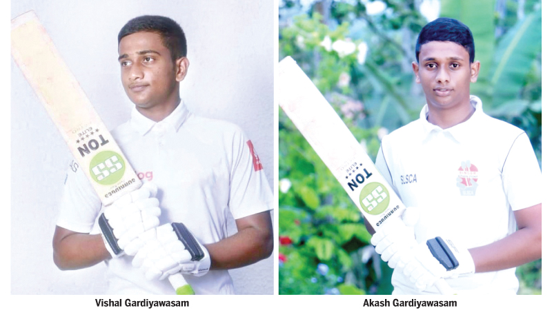 The school cricket arena has a unique combination of brothers taking part in tournaments from the hill capital of Kandy. Akash and Vishal Gardiyawasam are brothers, and both are schoolboy cricketers, currently playing for Sri Rahula College Katugastota in Kandy.