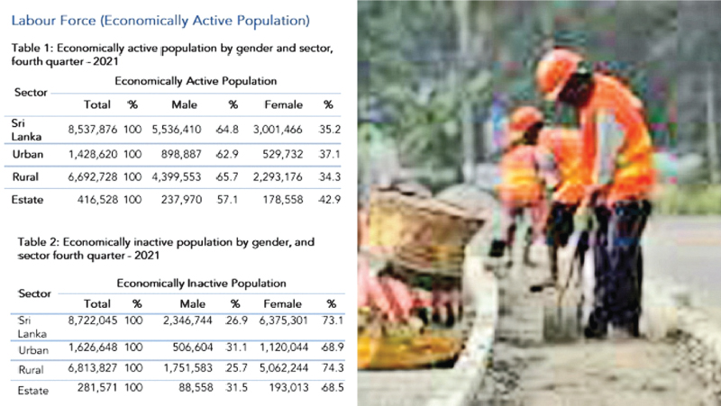 The highest participation rate for male is reported from age group 35 – 39 years (97.4%), while that for females is reported from 45 – 49 age group (47.7%), according to the Department of Census and Statistics.