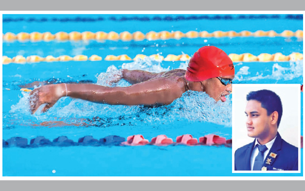he became first in the same event at the 44th Sri Lanka Swimming Championship. He did not get a place in the following year at the 44th Sri lanka Schools Aquatic Swimming championship held at the Sugathada Stadium Swimming pool. In 2017 he won a Silver Medal in the 200 Metre Individual Medley at the Inter District Sports Competition of the 44th National Sports Festival. He became second in the 200 Metre Butterfly event at the Sub Junior National Aquatic Championship in the same year.