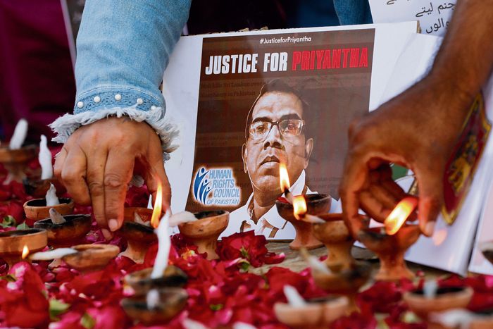 In a shocking incident, a mob of 800 men, including supporters of the radical Islamist party Tehreek-e-Labbaik Pakistan (TLP), attacked a garment factory in Sialkot on December 3 and lynched its 49-year-old general manager – Priyantha Kumara Diyawadana – before setting his body on fire over allegations of blasphemy.