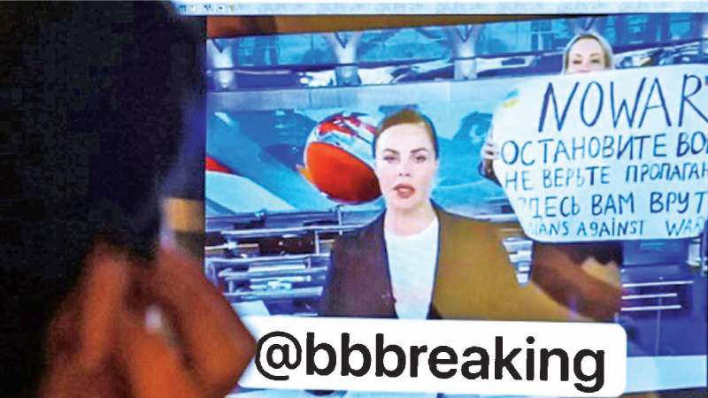 RUSSIA: A Russian state television employee who interrupted a live news program by protesting against the war with Ukraine was ordered to pay a fine by a Russian court Tuesday.