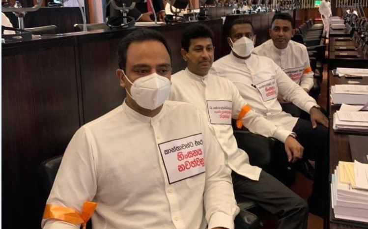 Samagi Jana Balawegaya (SJB) Parliamentarians staged a silent protest in Parliament today (25) against the harassment of women in Sri Lanka.