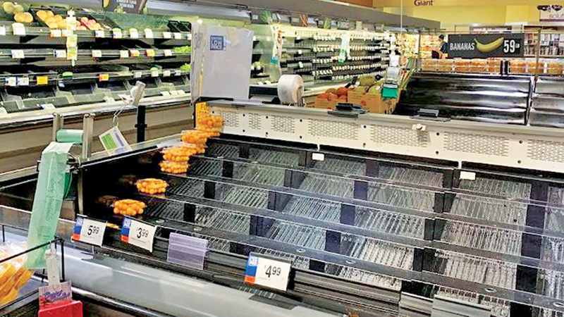 “It’s not as bad as Sunday but there are still plenty of empty shelves, lots of products are missing,” Justin Toone, a regular shopper at a Giant supermarket in the Washington suburb of Bethesda, Maryland, told AFP.