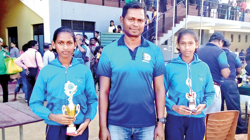 Fifteen year old, Twin sisters.Thewmali Omalja and Vidushi Thewanja Kotuwegedara are two talented Athletes of Vihara Maha Devi Vidyalaya,Kandy who started Athletics in the year 2016 under the coaching of Sanjeewa Weerakkody at the age of eleven years in the Under 13 age group. At the Under Twelve School Athletics Championship in the year 2016 Themali came second at the 100 metres and in the years 2017/2019 she won the Under twelve 100 metre event at the same Championship. At the Zonal Championship she came third in the 100 metre event and in 2018 In the Provincial Competition she won the Long Jump event by setting a new record of 4.50 metres and In 2019 again in the Provincial Meet she won the 80 metre event and set a new record. In the All Island Athletic Championship she finished fourth and in the Youth Asian Athletic Championship in 400 metre hurdles she finished second in the year 2021.