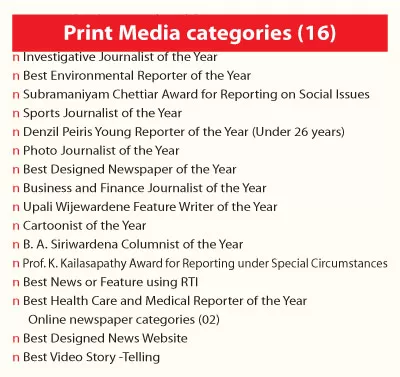The 24th edition of the annual Journalism Awards for Excellence programme culminating with the ‘Awards Night’ will be held at Empire Ballroom of the Mount Lavinia Hotel on Tuesday, December 12.