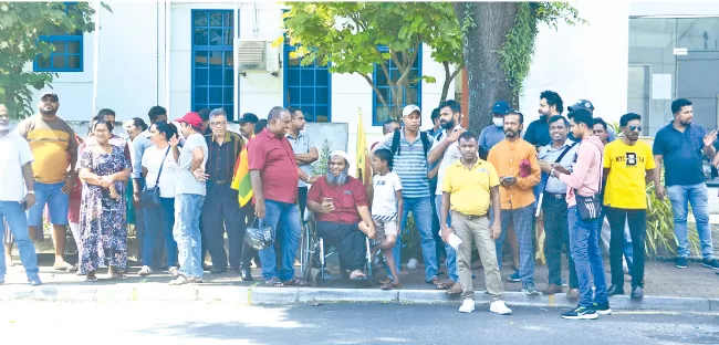 Cricket fans protesting outside SLC headquarters demanding legal action against SLC officials for their alleged misdeeds. Picture by Wasitha Patabendige