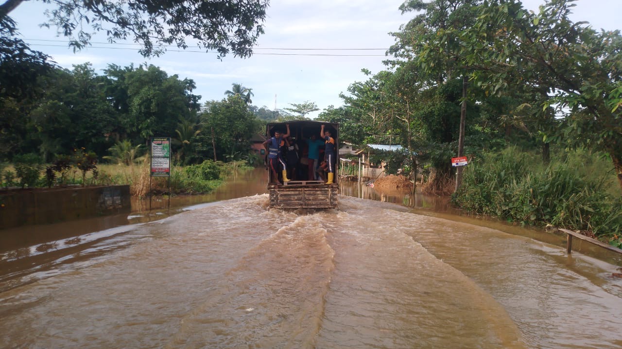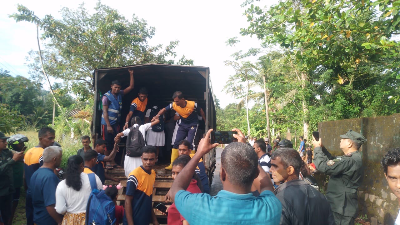 Meanwhile, in the Akuressa area, a 200-meter section of the Akuressa–Siyambalagoda road is similarly flooded, with army Unibuffel vehicles deployed to facilitate safe passage.