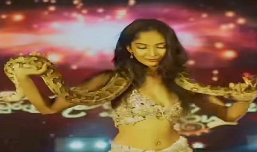 The suspect, identified as Nethmi Hiranya, is accused of handling a protected species in a harmful manner by placing a python around her neck and dancing at the event.