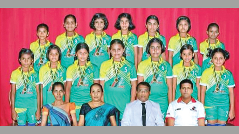 Dhammissara National School under 11 Volleyball Pool which emerged as Runners Up in the DSI All Island 2019 Tournament. Seated from left – Mrs. Uthpala Madawee Janannda (Mistress in Charge of volleyball), Mrs. Samantha Uralagamage (Deputy Principal), S. A. Anil Pushpakumara (Principal), P. A. Haritha Dishan (Coach). 2nd row from left – Aruni Erandi, Thisadi Thushmini, Hiruni Navoda, Dulini Nihara, Shenuri Dewmini, Sadini Raveesha, Vidushika Dewshani. Back row standing from left – Nathasha Dulanjali, Samadhi Navodya, Yahanvi Thinara, Nethya Minduli, Dewmi Prarthana, Sanjana Dewmini, Inuri Sansana.