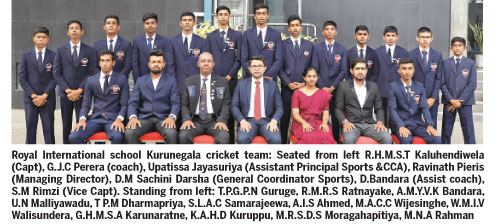 Asian Grammar School cricket team: Seated from left: Muhammed Sadhaadh (capt), Manoj Millawithanachchi (Head coach), Nadeesha Piushan, Kesha Kalpage, Sunimal Tennakoon, Dr Thushari Koralage ( Principal), Sumith Tennakoon, Savini Tennakoon, Visakha Kumarapelee, Jeewan D.Dayasiri, Narada Pathirana (Assist coach), Dushan Maduranga (Assist coach), Mahadi Ahamed (Vice Capt). Standing from left: Hesala Liyanarachchi, Kaveen Malshika, Chanul Semika, Lochana Sirimanne, Mayusha Shenal, Isala Liyanage, Dinul Weerasinghe, Dulaj Rupawanse, Puvindu Perera, Yugeeth Minsara, Mihin Dissanayake, Sadique Hammard, Ranuka Panagoda.