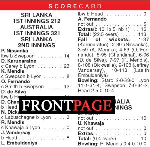 Sri Lanka came to the middle but that couldn’t work out their plan to get more runs to put pressure on the opponents. Aussie spinners once again got much turn on this surface to strangle Sri Lanka top order. Dimuth Karunaratne the skipper had a clear intention to attack and get a lead but experienced off spinner Nathan Lyon, leg spinner Mitchell Swepson and time part time off spinner Travis Head came to the front by making an early breakthrough to bundle out Sri Lanka for just 113 runs in 22.5 overs five minutes before lunch leaving Australia with an easy target of five runs to seal victory while David Warner hit a boundary and a six over mid wicket off Ramesh Mendis first over of the innings and only four balls was enough to win the game with Aussies taking a 1-0 lead of the two match series.