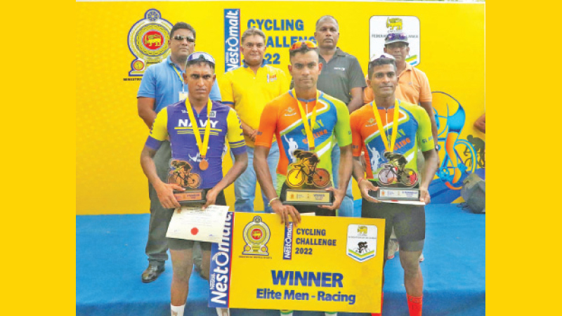 Avishka Medonza of Sri Lanka Army won the elite men’s 48km distance cycling race of the Nestomalt Cycling Challenge 2022 concluded successfully last Sunday. Medonza clocked 1 hour 06minutes and 93 seconds to finish in first place followed by Sandaruwan Pinto with the same time in a close finish.