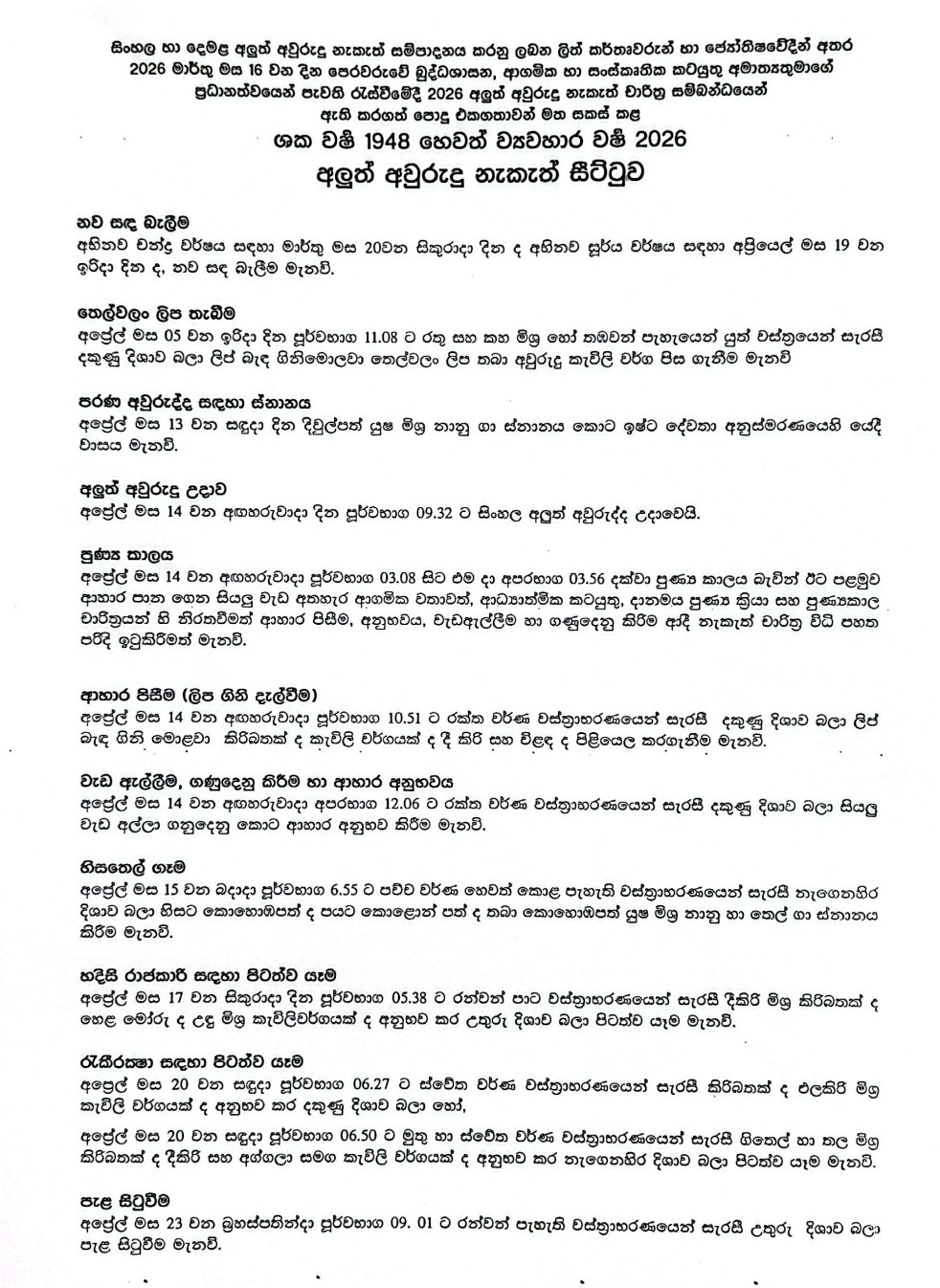 The post Avurudu Nakath Seettuwa for Sinhala and Tamil New Year Released appeared first on Newswire.