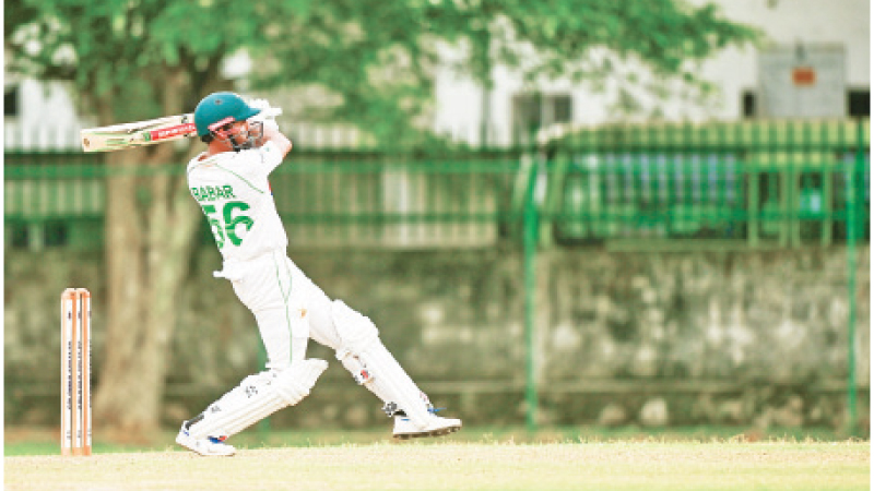 Former Skipper Babar Azam 88 in 113 balls with 8 fours and 4 sixes and skipper Azar Ali’s 43 in 119 balls with 3 fours help Pakistan to score 277 for 7 wickets at close of the first day’s play in their three day warm up game against Sri Lanka Cricket XI played at Colts cricket grounds yesterday.