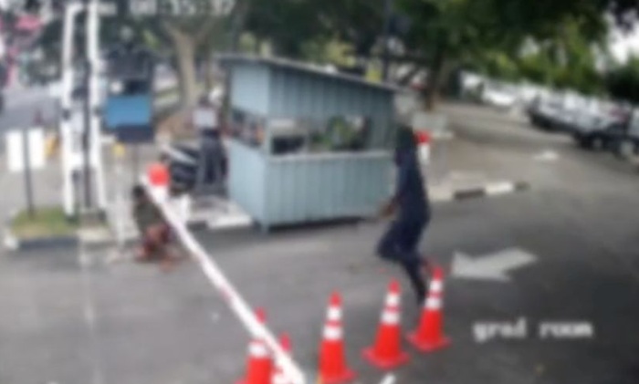 CCTV footage of the incident shows the victim being chased and attacked with swords by the two suspects, whose faces were covered with masks.