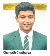 Chamath who hails from Kadawatha was born on January 9 2004 and admitted to St.Benedicts College Kotahena in 2009. former Bens Ruggerite KelumPriyankara and Surangi Sakunthala noticing that his son’s forte is cricket admitted him to the College Cricket Academy and he came under Vivien Savarimuttupulle in 2011. In 2014 he was selected to the under 13 division two team under Joe Saverimuthupulle and passed the 200 run mark with a fifty and in his second year in the division one he scored 250 runs and in 2016 captaining the team he passed the 250 run mark with a half century.