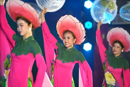 The gala opened with the dance performance “Beauty in Harmony.” Themed “Blooming Flowers and Full Moon,” the gala consisted of four parts: “Flowers” (Blossoms in Abundance), “Prosperity” (A Year of Good Fortune and Prosperity), “Moon” (Full Moon during Mid-Autumn Festival), and “Reunion” (Celebrating Together). Chinese and Vietnamese artists and art troupes together celebrated the Mid-Autumn Festival and the China-Vietnam friendship with wonderful song and dance performances.