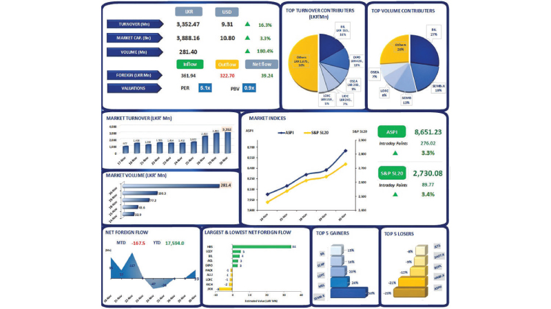 As a result, the index displayed an unprecedented spike throughout the session while closing the day at a 1-month high of 8,651, gaining 276 points.