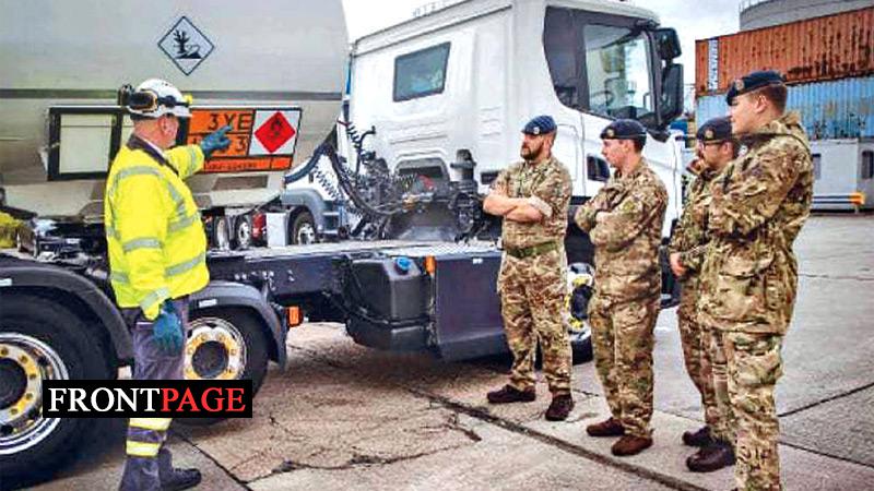 Military personnel were photographed at several fuel depots in southern England driving tankers, some with instructors, and then delivering fuel to a gas station.