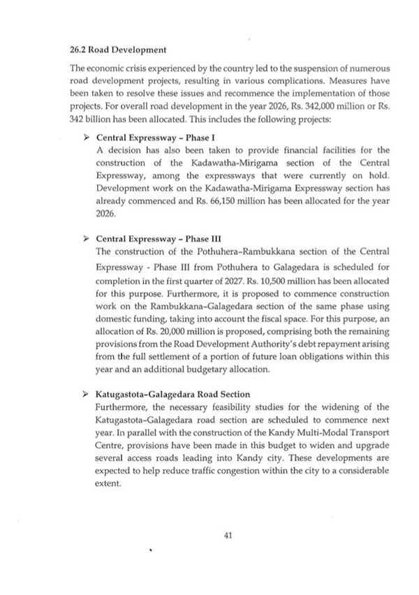 The post Budget 2026 : Allocations for road development projects appeared first on Newswire.