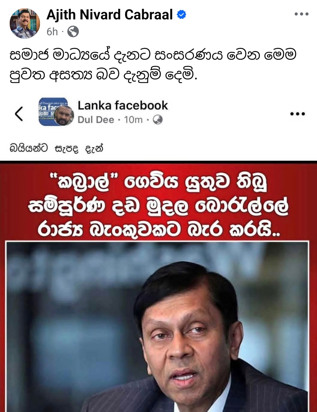 Former Central Bank Governor Ajith Nivard Cabraal has rejected social media claims that he paid Rs. 1.84 billion in connection with the Greek bond case.