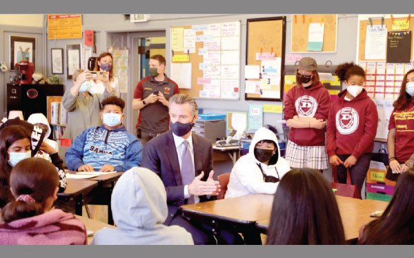 Newsom said the approach — which includes pushing back against false claims and other misinformation — means maintaining a wary watchfulness attuned to warning signs of the next deadly new surge or variant.