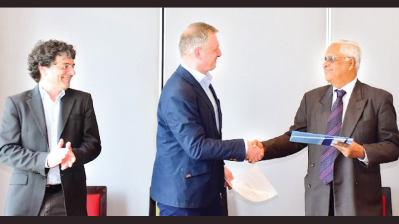 Tobias Weick on behalf of Dr. Chistof Riess German Chamber of Skills Craft Council and Chairman, CCI, Eng. Nissanka Wijeratune exchanging the agreement