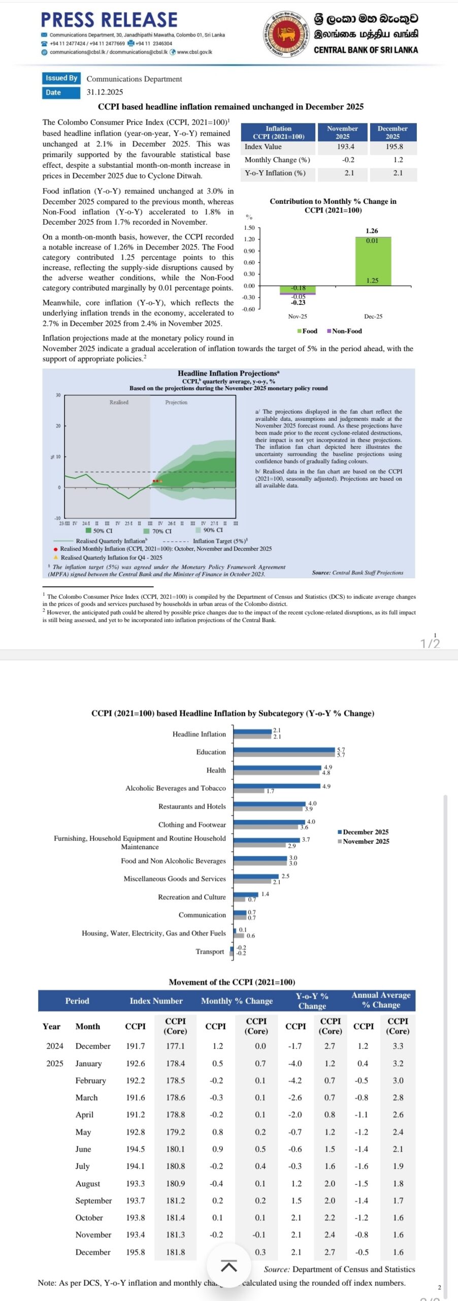 The post CCPI based headline inflation remained unchanged in December 2025 appeared first on Newswire.