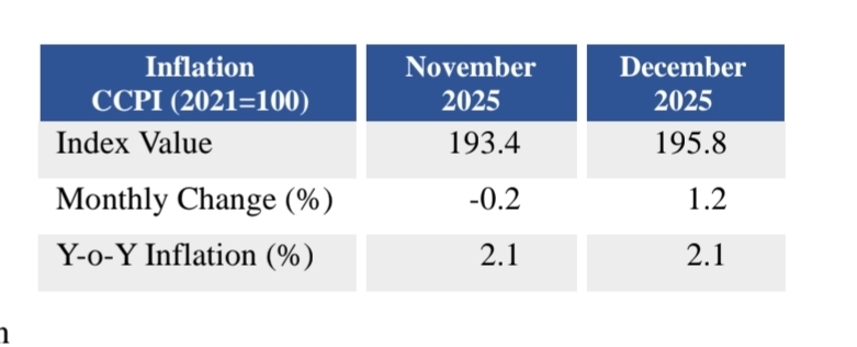 CCPI based headline inflation remained unchanged in December 2025