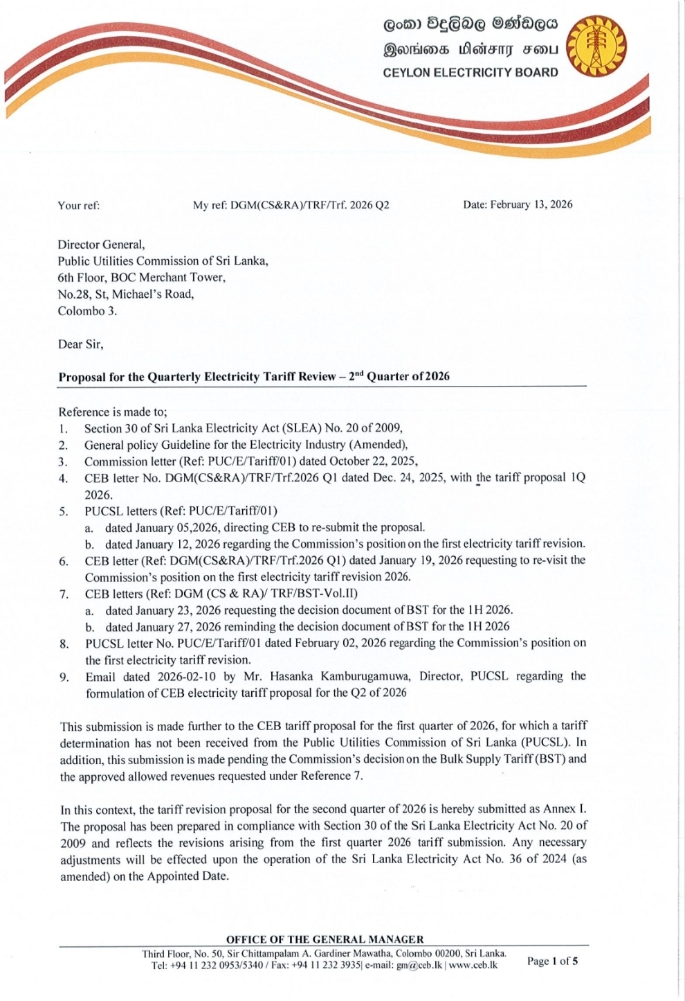 The post CEB Proposes 13.56% Electricity Tariff Hike for Q2 2026 appeared first on Newswire.